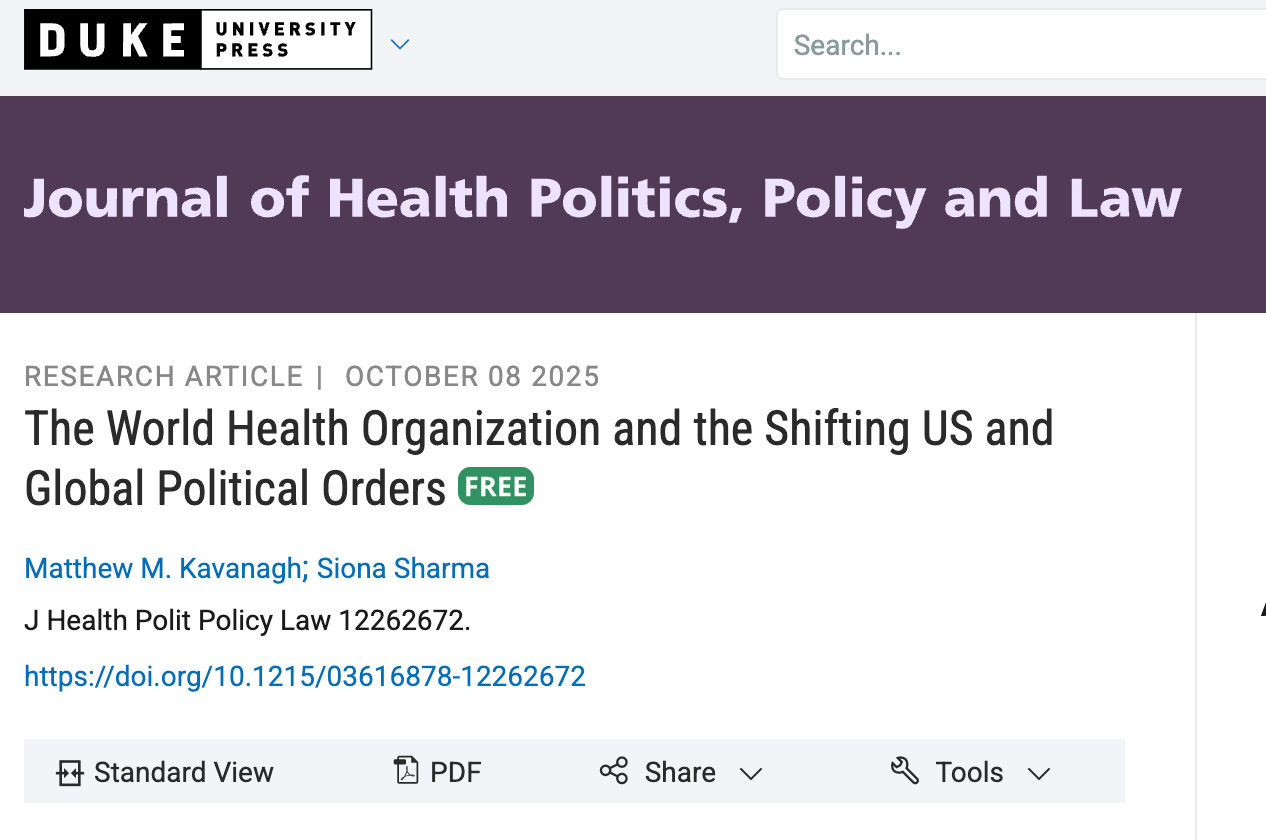 Mathew M. Kavanagh & Siona Sharma, Journal of Health Policy, Politics & Law The withdrawal of the United States from the World Health Organization raises crucial questions about its…